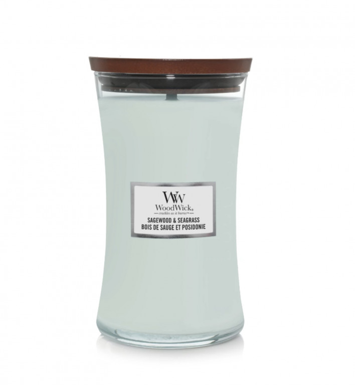 - Sagewood Seegras - L WoodWick Mirisna sveća (morska so, ruzmarin, kedar, mošus...)