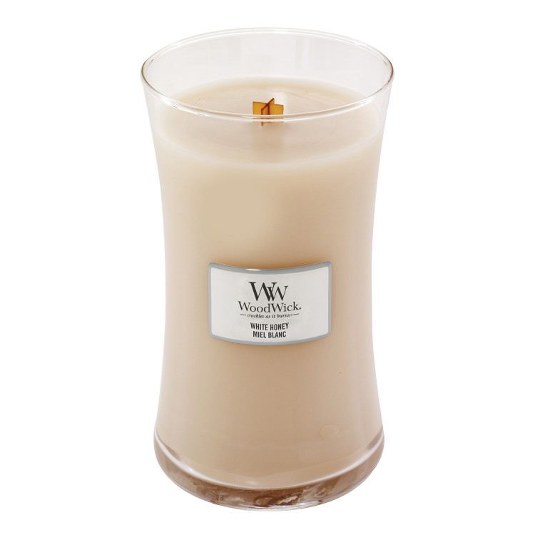 - White Honey - L WoodWick mirisna sveća (narandžin cvet i vanila)
