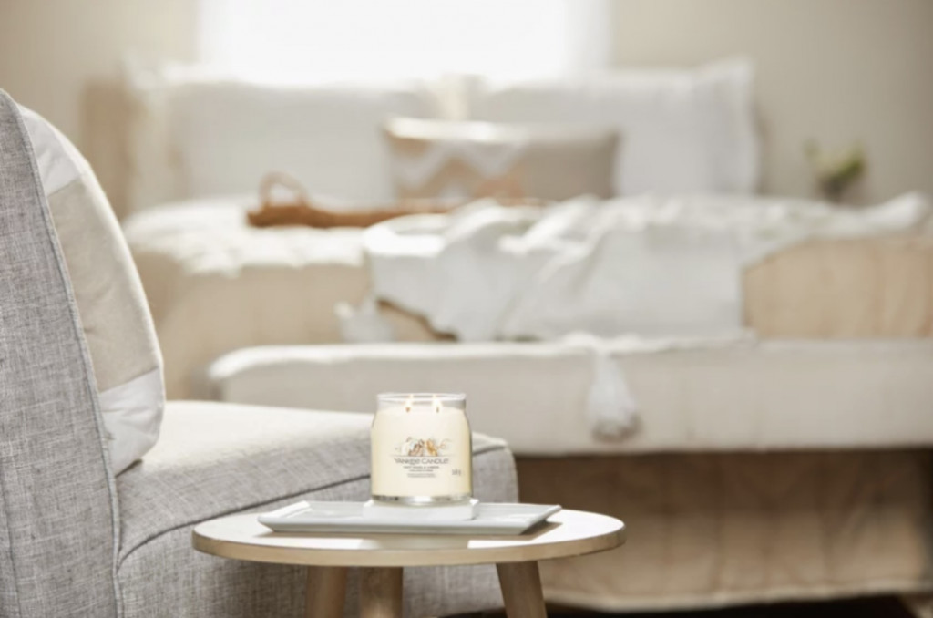 Srednja sveća u tegli iz Signature kolekcije od Yankee Candle livena je od blenda sojinog voska sa dva pamučna fitilja.