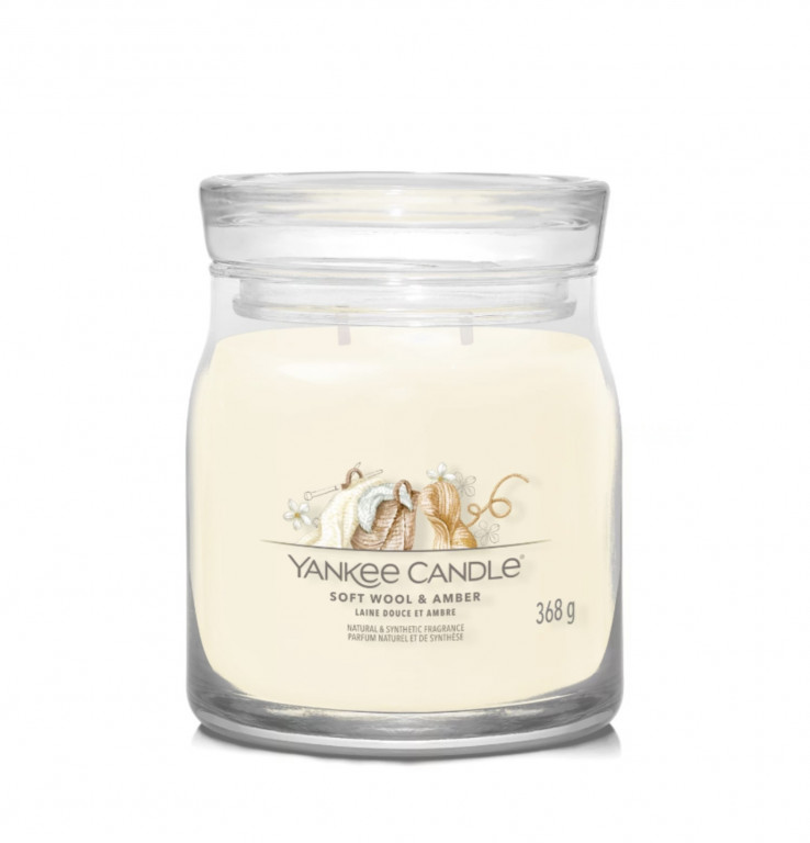 Soft Wool Amber Signature mirisna sveća - srednja tegla (amber, jasmin, sandalovina...)